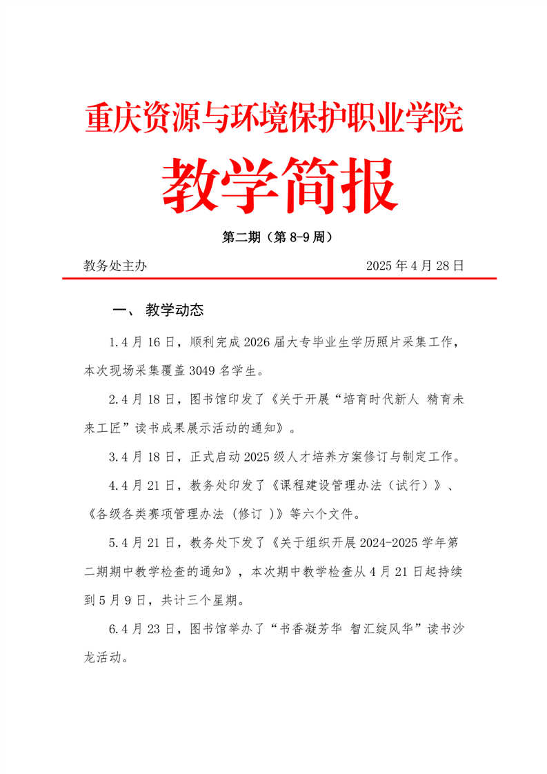 查看详情重庆资源与环境保护职业学院教学简报第二期