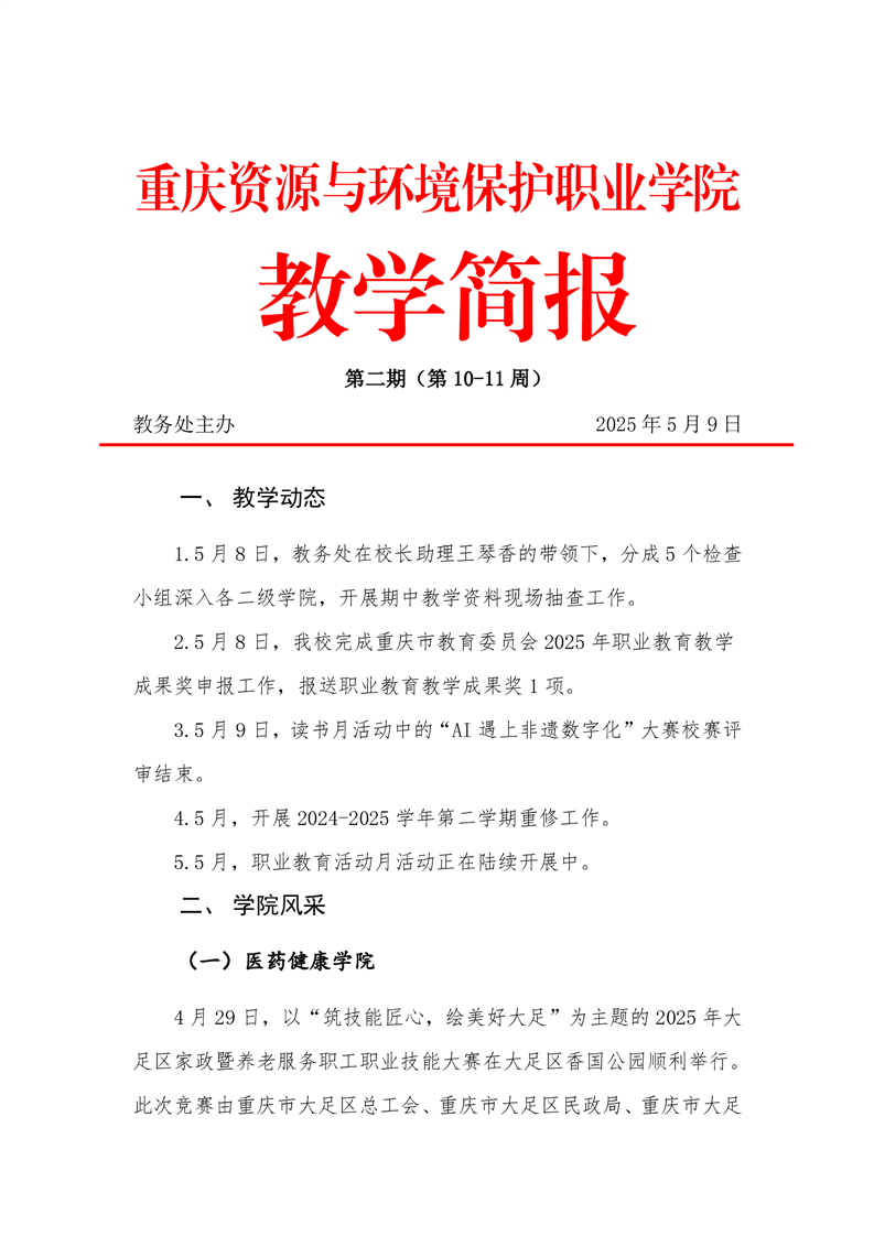 查看详情重庆资源与环境保护职业学院教学简报第五期