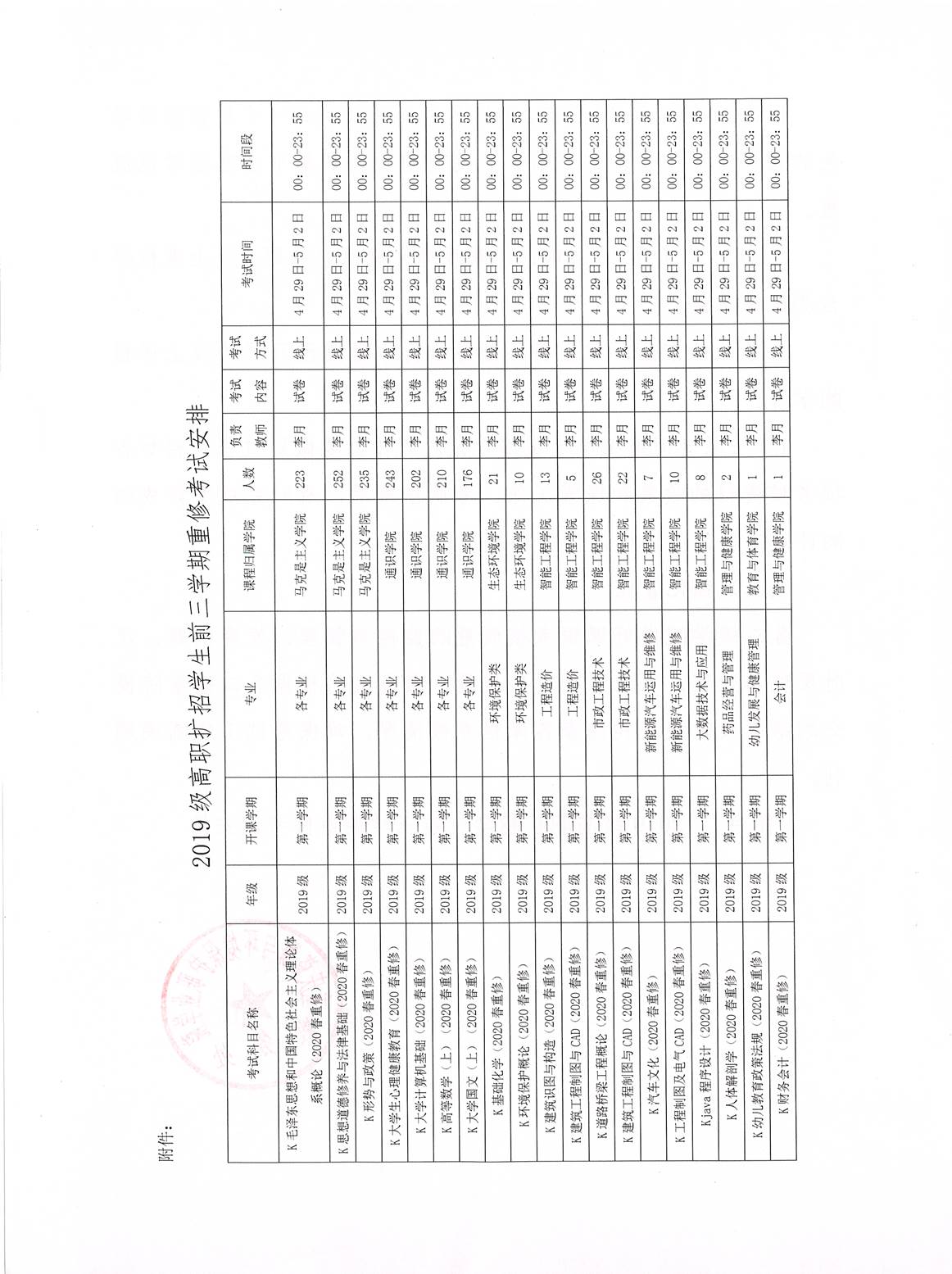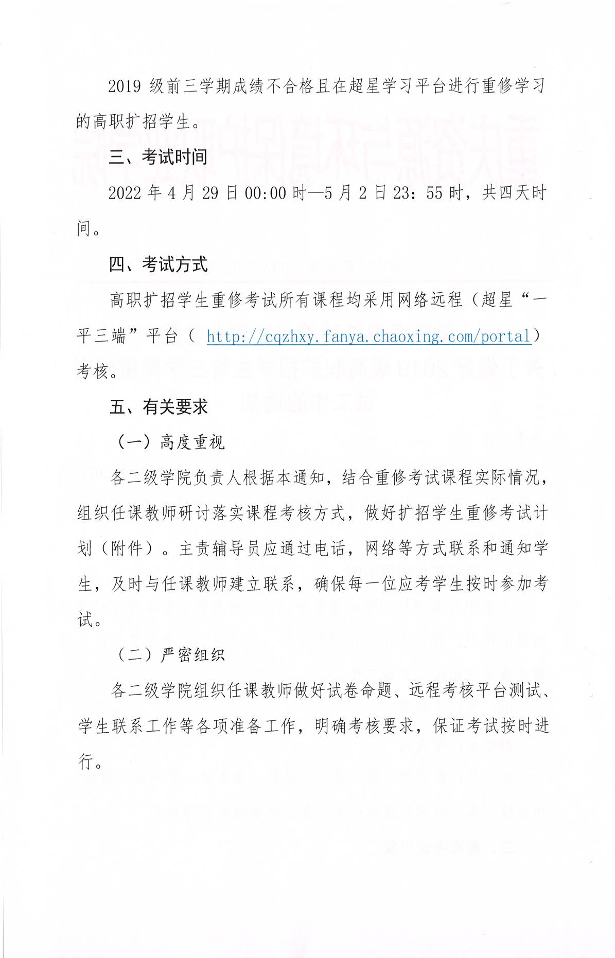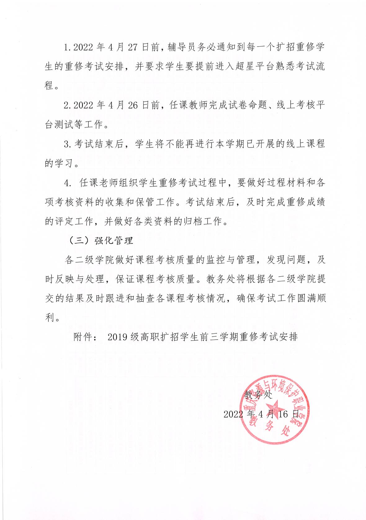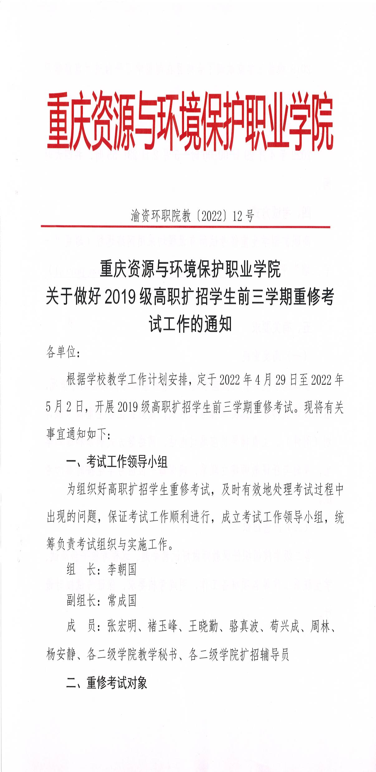渝资环职院教〔2022〕12号关于做好2019级高职扩招学生前三学期重修考试工作的通知