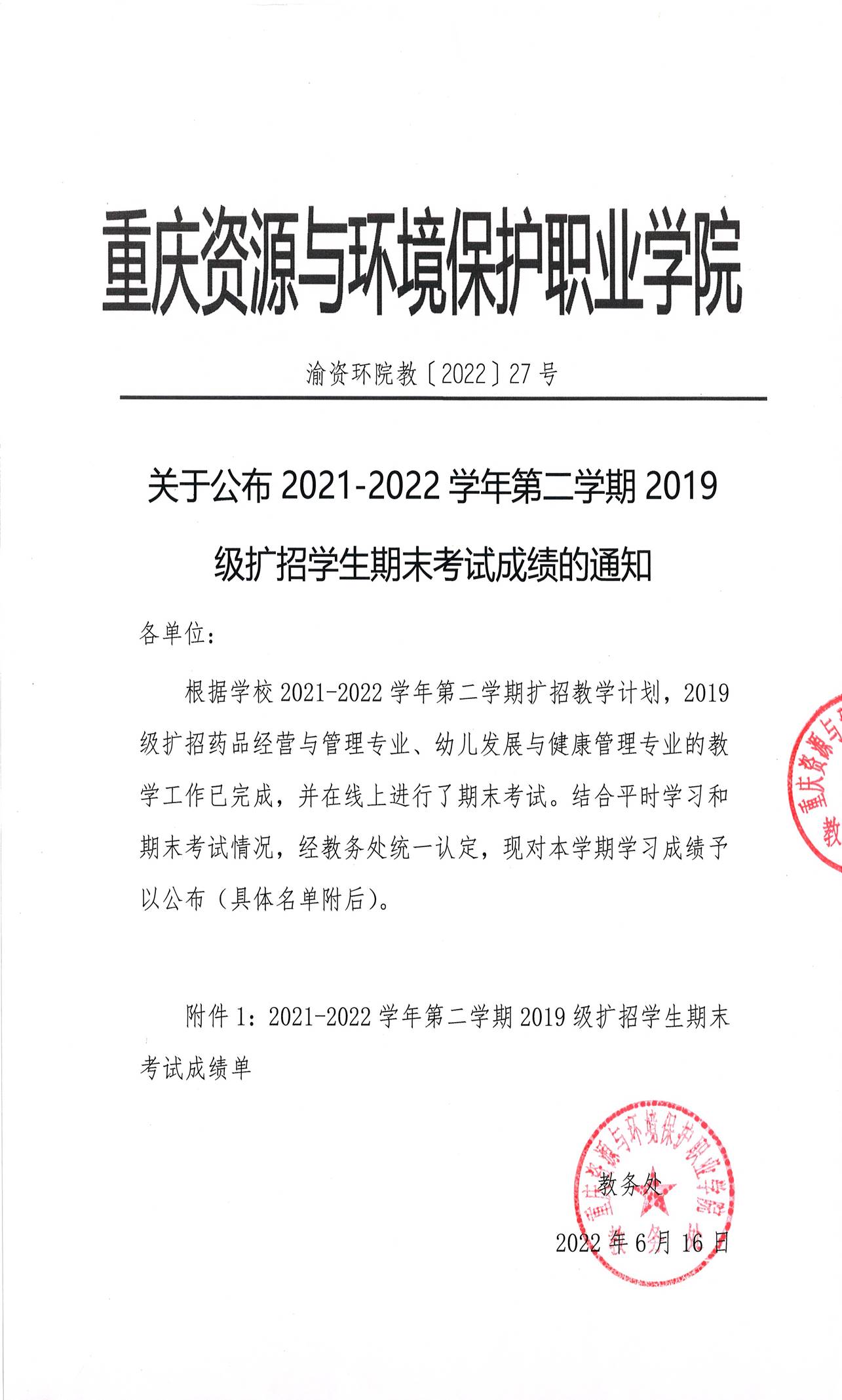 关于公布2021-2022学年第二学期2019级扩招学生期末考试成绩的通知