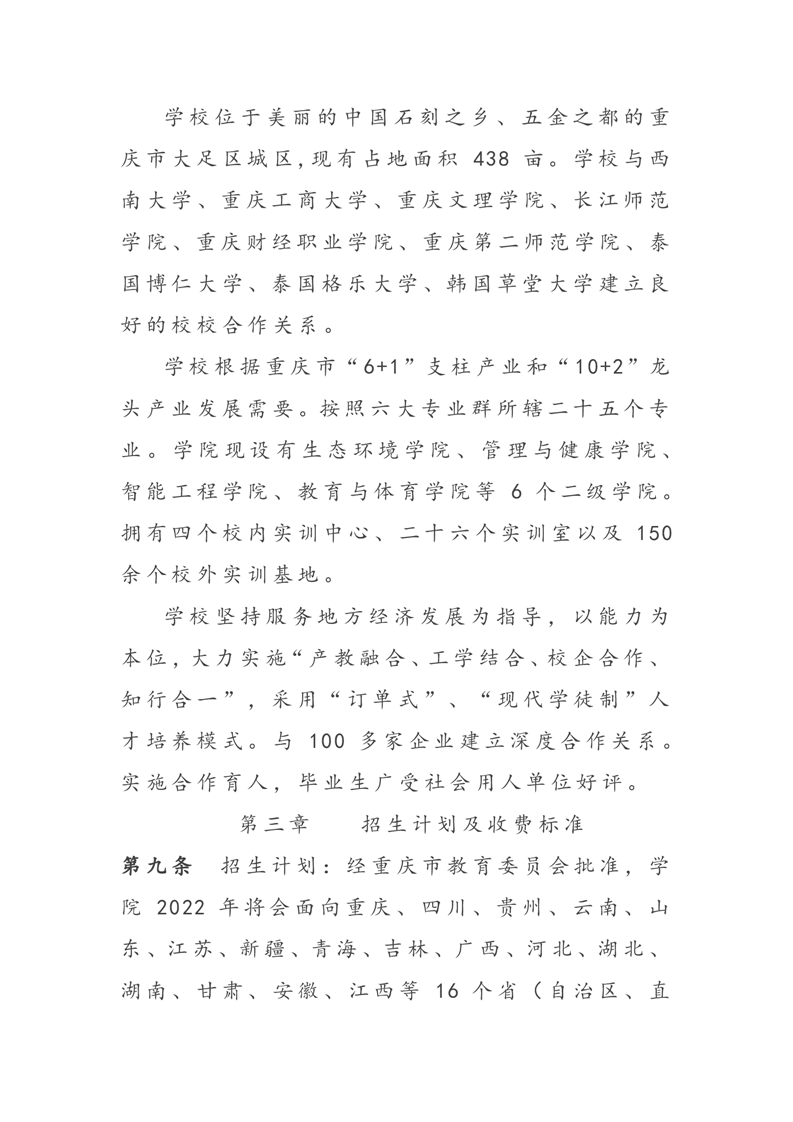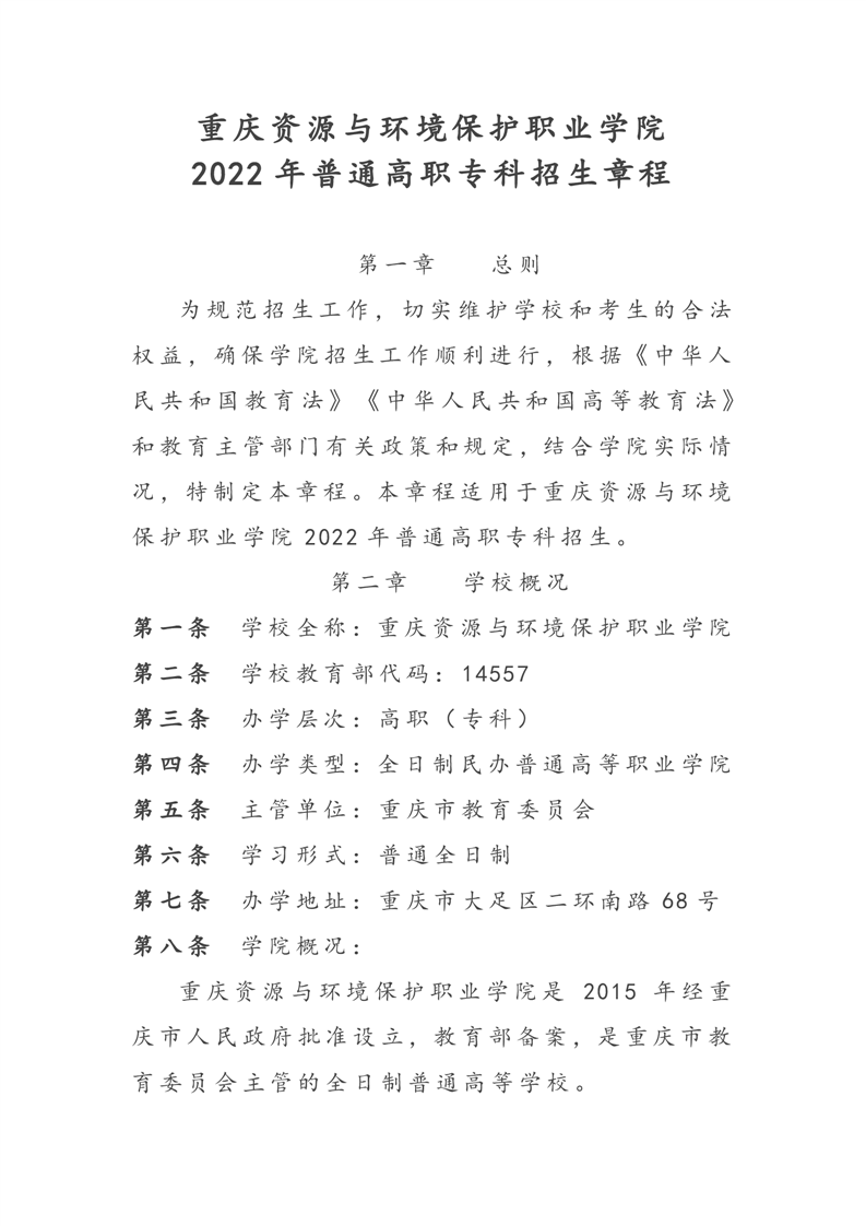 2022年普通高职专科招生章程