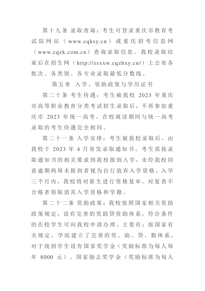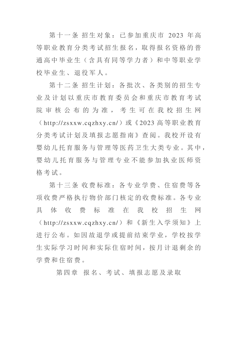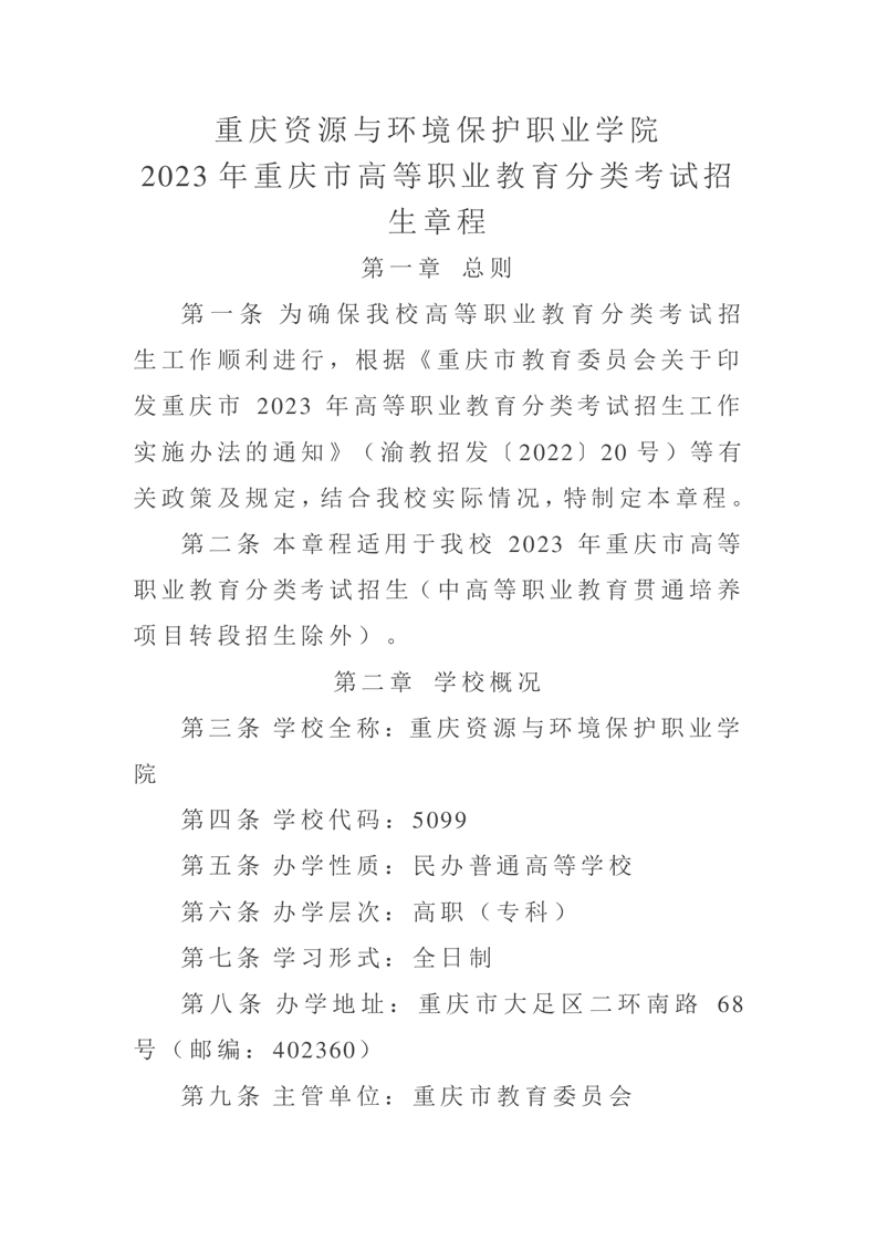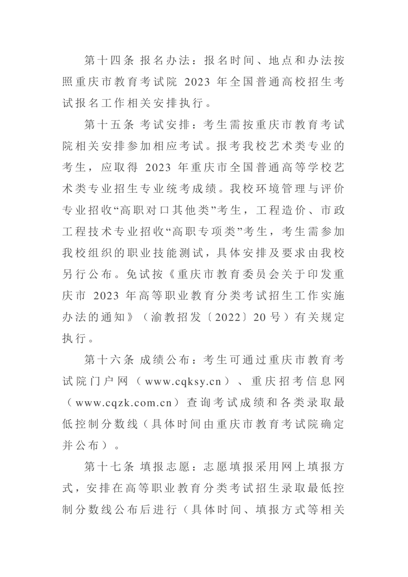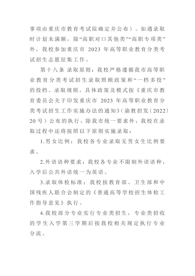 2023年重庆市高等职业教育分类考试招生章程