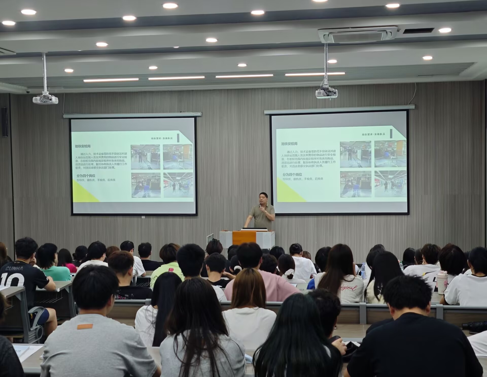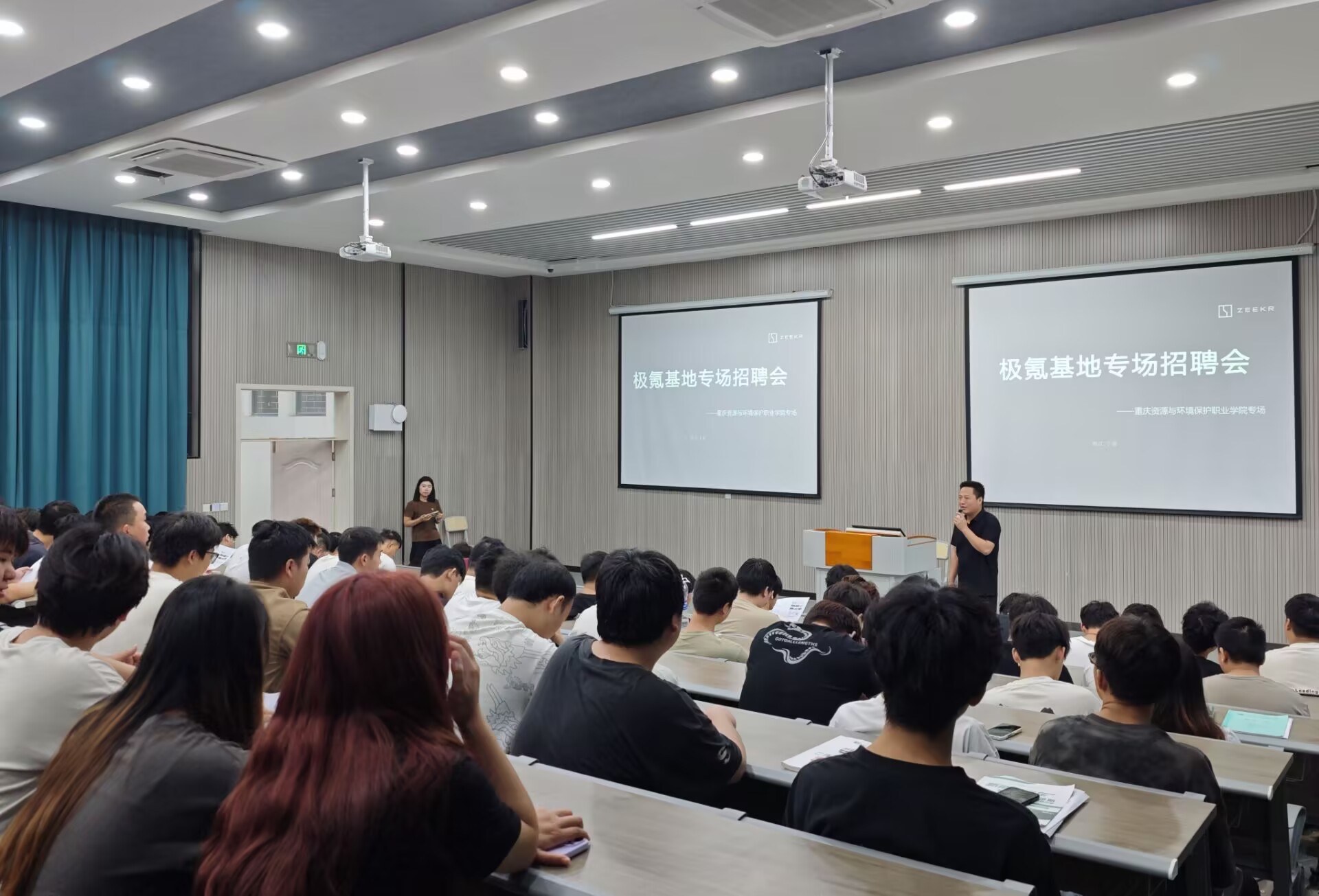 活动现场,企业代表通过宣讲会形式,向学生全方位展示企业实力。极氪梅山工厂聚焦新能源汽车制造前沿,介绍智能生产体系与人才培育规划;深铁、京港地铁围绕城轨运营管理,解析行业趋势与岗位发展路径。学生们认真聆听、踊跃交流,在专业适配岗位中寻找职业方向,现场互动频繁、氛围火热。