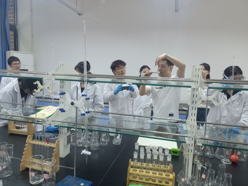 培训过程中,彭传友教授以“氢氧化钠标准溶液的标定”操作为例为同学们讲解了玻璃仪器的正确洗涤方式、移液管、滴定管的规范操作、以及实验操作各方面的具体细节,同学们在听课过程中十分投入,积极提问,表现出了浓厚的兴趣。马双教授为同学们讲解了分光光度计的使用操作,并分享了自己的参赛经验,使同学们对大赛内容有了进一步的了解,对自己备赛的方式方法有了更明确的认识。