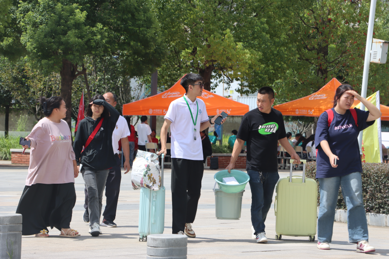 报到现场如火如荼,到处都是忙碌的身影。专业教师们有的在耐心、细致地为新生和家长们解答着各种问题,有的主动帮着拎行李,有的开心地介绍这介绍那,一路上谈笑风生。