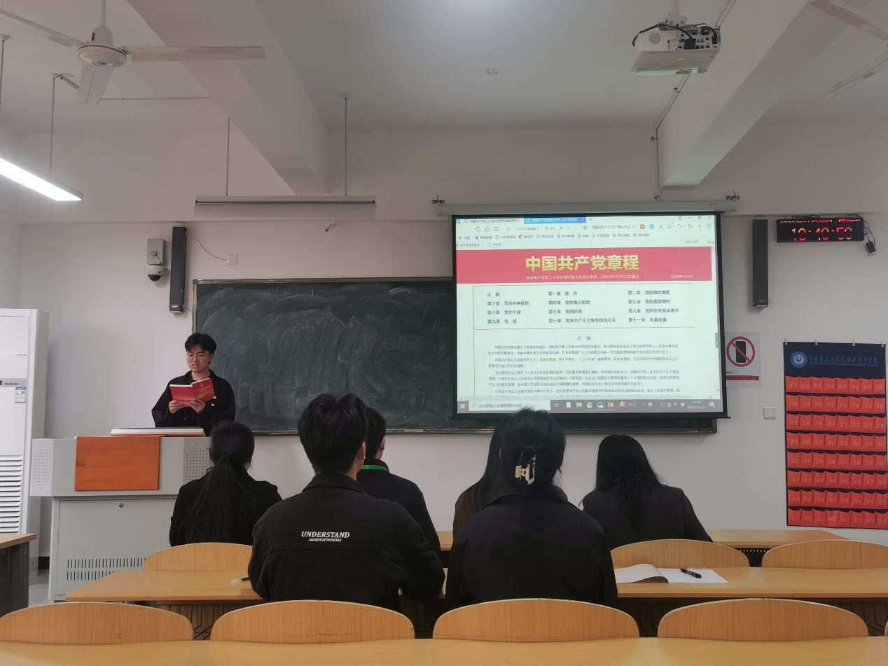 2023年11月22日,生态环境学院学生党支部组织召开了以“亮旗帜,亮规矩,亮身份,亮形象”为主题的党日活动。会议由支部书记唐成兰主持,支部全体党员参加会议。