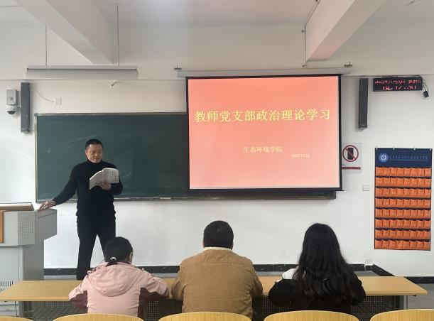 2023年11月22日下午,生态环境学院教师党支部在XJ307开展了主题党日活动,此次党日活动的主题围绕“学习习近平文化思想 ,勇担新时代文化使命”展开集中研讨交流。本次主题党日活动由生态环境学院教师党支部书记张宏明主持。