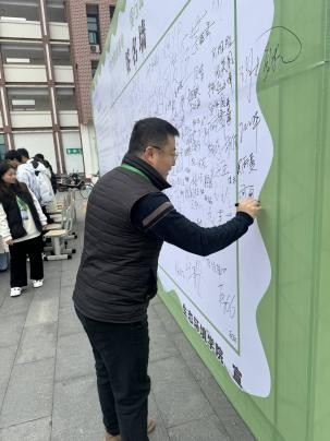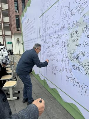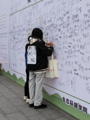 在活动过程中,醒目的宣传海报和节约用水的展板吸引了老师和同学们的关注。在阅读倡议书后,大家都纷纷在签名墙上签下了自己的名字,并且他们都一致认为节约资源必须做到共同关切,共同努力。