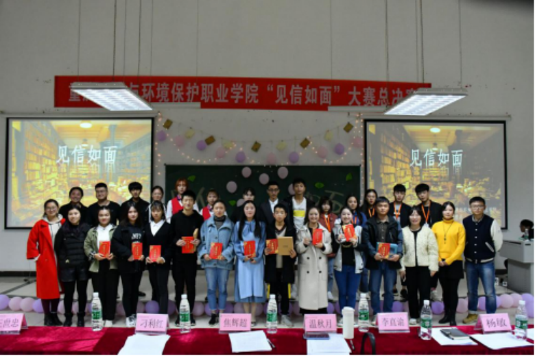 2019年11月6日晚在J112教室重庆资源与环境保护职业学院“见信如面”总决赛成功举办,提笔写信,回归传统;聆听故事,感悟人生;为丰富大学生校园文化生活,形成学生的文化自觉和自信。