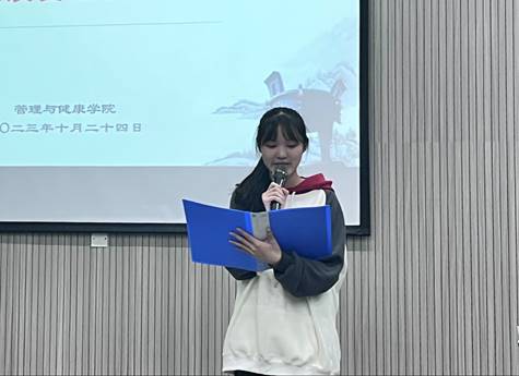 此次比赛,由管理与健康学院院长唐红英,学生处副处长包万洪,学生处副处长温秋月,管理与健康学院财会金融教研室主任张丹丹,学生处周龙燕老师担任评委;现场还有管理与健康学院学生到场观摩。本次大赛由管理与健康学院20级药管2班蒋秦主持。