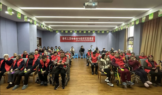 2023年11月22日下午我校管理与健康学院2023级智慧健康养老服务与管理专业1班(2年制)学生在专任教师的指导下前往西禅社区养老服务中心庆祝生日会,将老年人活动策划组织课程实践活动真正运用到养老机构场景,进一步推进校企合作落地,加强与企业联系,优化教学手段,落实课程改革。