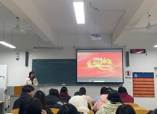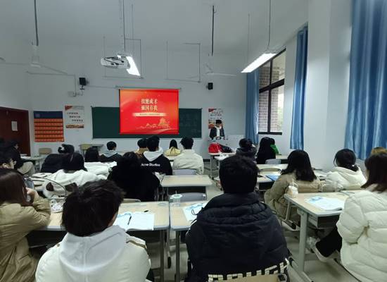管理与健康学院于2024年12月23日晚上7点积极组织大一、大二学生在各班会教室开展了一场意义深远的爱国主义教育课,紧扣 “技能成才,强国有我” 的主题,于校园内掀起青春奋进热潮。