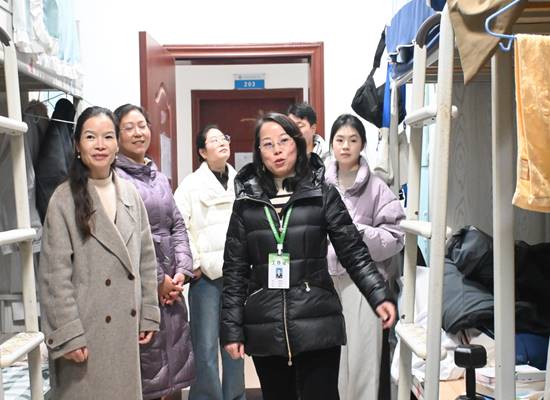 新学期的钟声刚刚敲响,为了深度洞察学生们在校的学习生活状态,将学院的关怀与温暖传递到每一位新生心间,2025年2月23日晚8点,喻帮梅校长亲自带队,医药健康学院院长唐红英、校团委书记温秋月、后勤处主任张平和党总支书记赵茂森以及医药健康学院一众辅导员一同踏入学生寝室,对学生们展开了亲切的慰问。