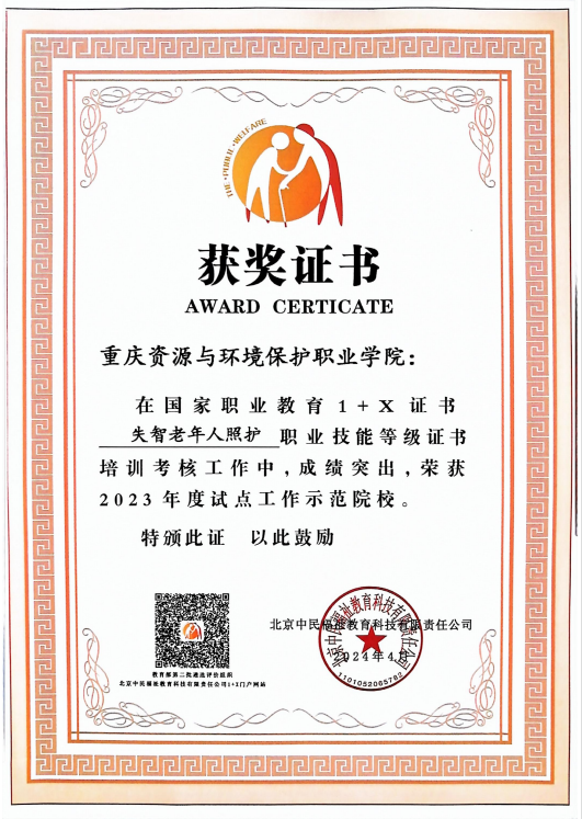 近日,我校管理与健康学院获评教育部1+X证书制度试点工作失智老年人照护职业技能等级证书2023年度试点工作示范院校。推广实施1+X证书制度,是深化复合型技术技能人才培养模式改革、评价模式改革和提高人才培养质量的重大制度创新,下一步,管理与健康学院将认真贯彻落实《国家职业教育改革实施方案》精神,加快构建职业教育现代化,推进教育部1+X证书制度试点工作取得更好成绩。图/文:罗晓兰审核:唐红英