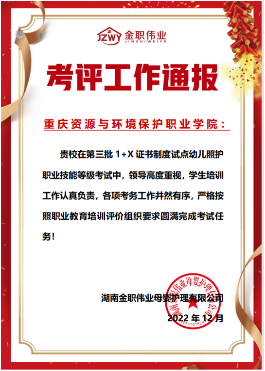 重庆资源与环境保护职业学院完成“1+X”幼儿照护职业技能等级证书(中级)考试