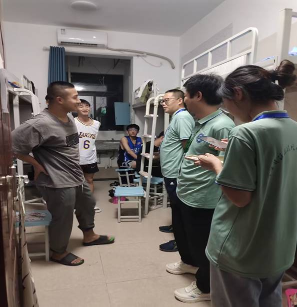 2023年8月26日晚,教育与体育学院徐春桥院长带领学院副书记焦辉超及新生辅导员深入梅苑,兰苑走访了学前教育、婴幼儿托育服务与管理、环境艺术设计和休闲体育专业学生宿舍,关心学生生活,耐心解答学生专业上的疑惑,送去赴远求学的学子们亲切关怀。徐院长鼓励同学们一定要志存高远,脚踏实地,走好人生最关键一步,同学们纷纷表示一定努力学习,好好历练,不辜负学校和家长的期望。