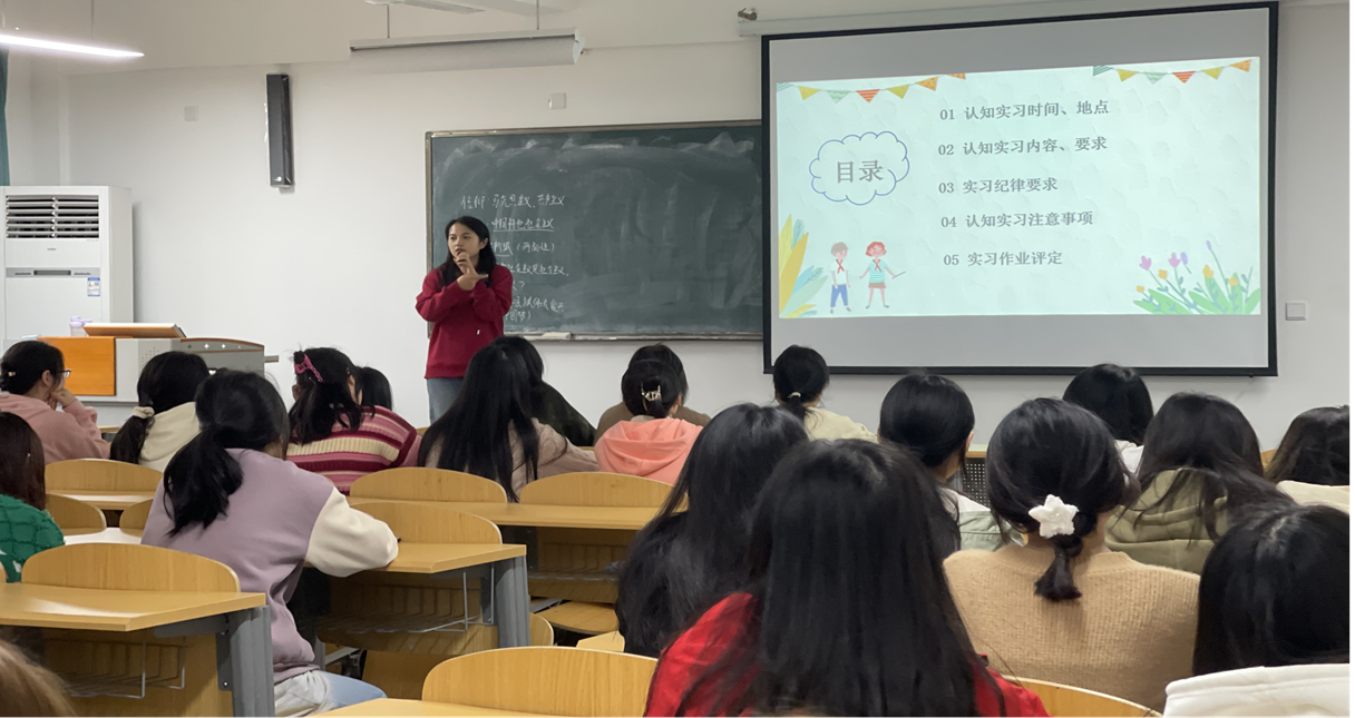 三位老师从实习目的、实习内容、纪律要求、注意事项、考核方式等角度对认识实习进行详细的讲解,帮助学生了解认识实习的重要意义与作用,并希望各位同学能扎实完成认知实习任务适应教师角色,带着明确的目标,认真观摩,为自己未来职业生涯积累经验。