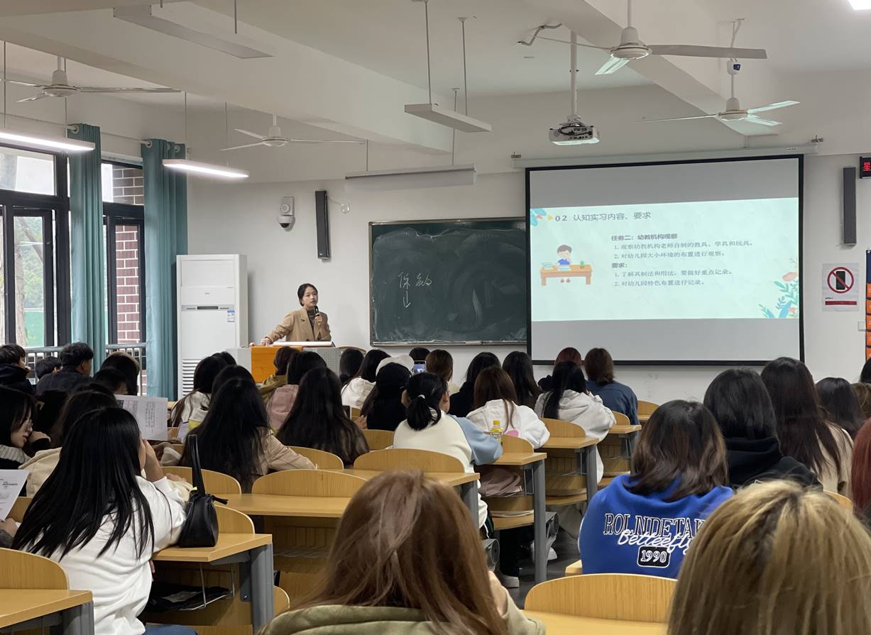 根据人才培养方案教育要求,教育与体育学院于2023年10月11日下午,对2020级五年一贯制、2023级两年制婴幼儿托育服务与管理专业的三百余名学生进行“认知实习”动员大会。本次动员大会由吴越、焦文鑫、韩丹阳3位老师负责主讲。
