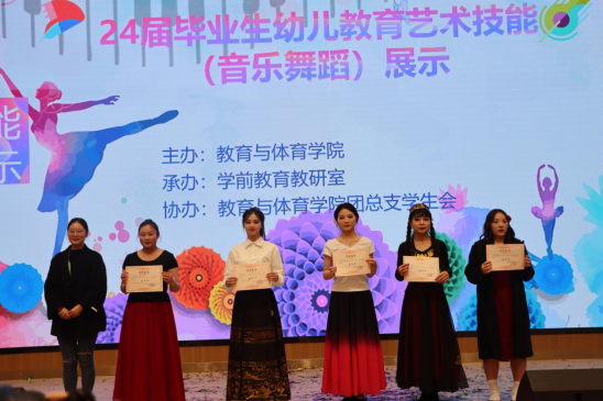 为了展示资环学子的青春风貌、专业技能,带动校园文化的纵深发展,培养学生艺术欣赏水平,对2021级学前教育专业与婴幼儿托育服务与管理专业的学习成果进行检验,教育与体育学院学前教育教研室针对本专业音乐舞蹈技能板块举办了专业技能大赛,面向全校进行成果展示。此次技能大赛由教育与体育学院主办,学前教育教研室承办,教育与体育学院团总支学生会协办。