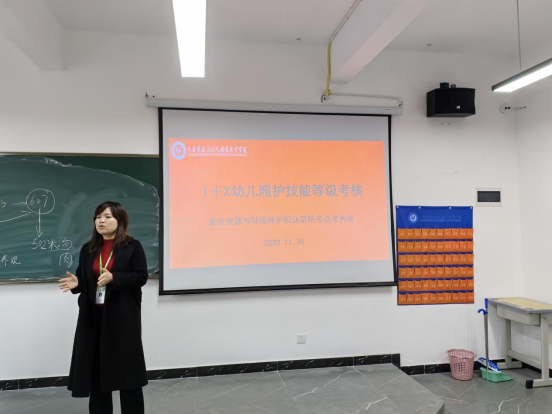 为贯彻落实《国家职业教育改革实施方案》要求,促进技术技能型人才模式和评价方式改革,推动职业技能等级标准与专业教学标准有机衔接、岗位工作内容与课程教学内容融合、岗位能力与专业能力对标,推广“1+X”职业技能证书。2023年11月25日,教育与体育学院组织学前教育专业、婴幼儿托育服务专业完成1+X幼儿照护职业技能等级证书(中级)考试工作。参与本次考试的人员有教务处巡考陈旖璇,督导员重庆科技职业学院王成碧、考评员重庆科技职业学院徐碧珍、重庆电信职业学院石慧、重庆资源与环境保护职业学院刁强维、陈雪等。