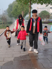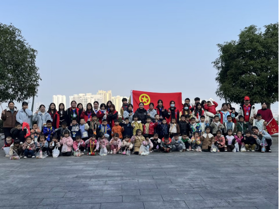 教育与体育学院志愿者于12月7日早上8:30志愿者们出发前大足区迪乐凯斯幼儿园。到达幼儿园,志愿者们与小朋友们组织集合,今天我们要和小朋友们一起去徒步南山。徒步是感受探索大自然最直接的户外运动方式。志愿者们分为两组带领小朋友们出发!