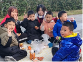 在山上与自己的小伙伴一起野餐,是多么美好的童年回忆啊!志愿者们与老师们一起为小朋友美好的野餐忙碌着,小朋友们纷纷拿出自己的美食同志愿者们一起开心地分享。在这欢乐的时刻,风儿起,花儿展枝弄舞,生出一片柔情。幸福随风散溢,醉了风景,醉了童年。