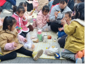 到达目的地,小朋友们整齐地把东西放好,喝水补充体力,志愿者们协助老师,同小朋友们玩起了有趣的游戏,跳起了欢快的舞蹈。此时此刻,小朋友和大朋友们的都是活力四射。童真与童趣编制的少儿的回忆,在一个个游戏和五花八门的零食里。