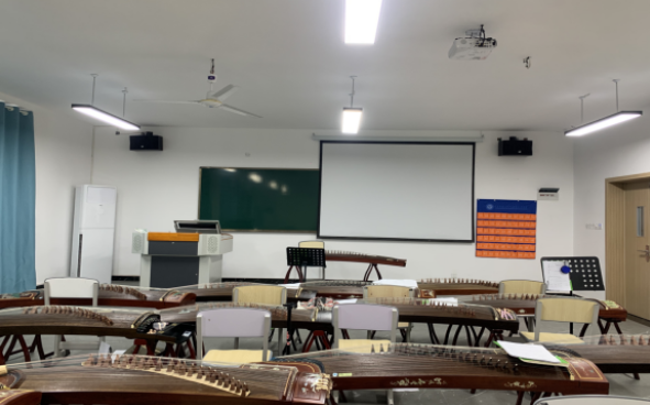 本专业配备校内实训室19间、小琴房10间、电钢琴实训室2间、舞蹈实训室3间、视听教室1间、奥尔夫音乐教室1间、古筝实训室1间、供学生进行艺术实践的多功能厅1个等,其中包括电子钢琴105台,教学钢琴5台,使用率约为80%。