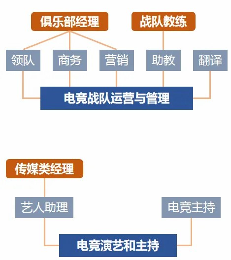 随着电子竞技产业规则的持续扩张,其产业链已延伸至赛事、 俱乐部、自媒体和直播平台等多个领域,市场快速扩展的同时也带 了极大的用人需求,目前相关岗位已覆盖俱乐部、赛事公司、电子 竞技传媒等多个领域,其中教练员、数据分析师、专业裁判员、赛 事执行、游戏工程师等岗位对人才的需求度极高。