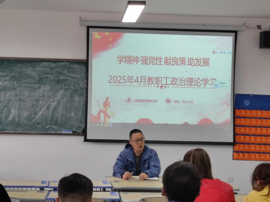 4月25日下午,财经教育学院党总支在XS606开展了4月主题党日活动,此次党日活动的主题围绕“深入贯彻中央八项规定精神”展开。