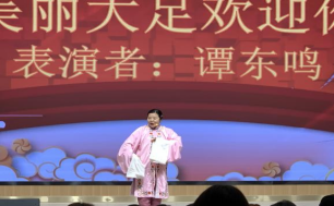 最后由我们大足区戏剧曲艺协会的谭东鸣女士为我们带来了一首川剧歌唱《美丽大足欢迎你》将整场演出推向高潮。