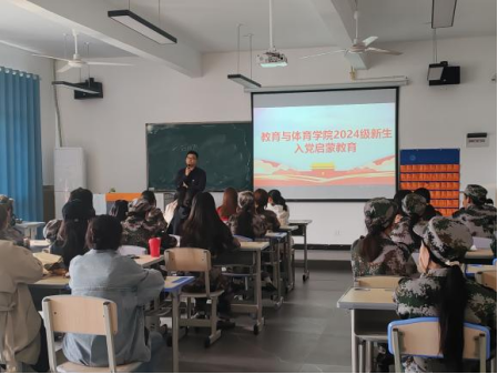 为贯彻落实新时代党的建设总要求和党的组织路线,增强党组织在广大青年学生中的感召力和凝聚力,加深2024级新生对中国共产党的深刻认识,引领其牢固树立正确的世界观、人生观和价值观,10月17日下午,于XS502开展了2024级新生入党启蒙教育活动,活动由教育与体育学院党总支学生党支部书记吴永波主持。吴永波书记强调,“青春是用来奋斗的,青年一代有理想、有担当,国家就有前途,民族就有希望。”吴书记的话语