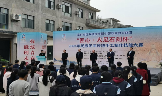 今日,备受瞩目的成渝地区双城经济圈中部职业教育联盟“匠心·大足石刻杯”2024年民族民间传统手工制作技能大赛在大足隆重举行。本次大赛吸引了众多技艺精湛的手工制作达人参与,共同展现民族民间传统手工制作的独特魅力。大赛现场气氛热烈,选手们各展其能,以精湛的技艺和无限的创意,将传统手工制作技艺发挥得淋漓尽致。每一件参赛作品都凝聚着选手们的心血和智慧。经过如火如荼的紧张备战,我校教育与体育学院的参赛作品