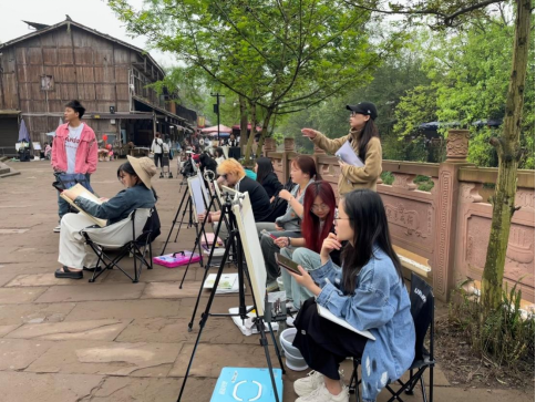 笔墨丹青写华章山水逐梦颂盛世——教育与体育学院环艺认识实习(外出写生)活动在春意盎然的四月,环境艺术设计专业的学生们踏着春意,满怀期待地踏上了一段丰富多彩的雅安之行,。从古朴的上里古镇到壮丽的碧峰峡景区,再到充满历史韵味的雅安博物馆,这次认识实习(外出写生)活动不仅让学生们领略了自然与人文的双重魅力,更为他们的专业成长注入了新的活力。一、实践结合理论,探索古镇魅力在写生期间,学生们在指导老师的带