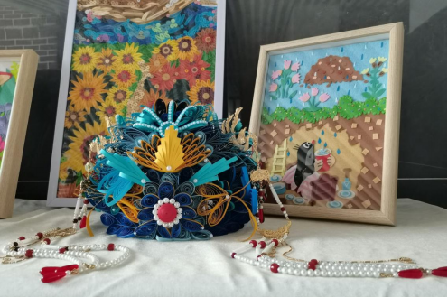 【职教月】教育与体育学院学生积极参与重庆市大足区第四届师生艺术节艺术工坊活动近日,我校教育与体育学院的一群热情洋溢的学生,在指导老师的带领下,参与了重庆市大足区举办的第四届师生艺术节艺术工坊活动。此次活动以纸艺为主题,旨在通过纸艺创作,提升学生的动手能力和艺术素养,同时也为师生提供了一个展示自我、交流学习的平台。在活动现场,同学们邀请前来参观的群众体验传统纸艺文化,并参与动手实践。他们用剪刀、胶