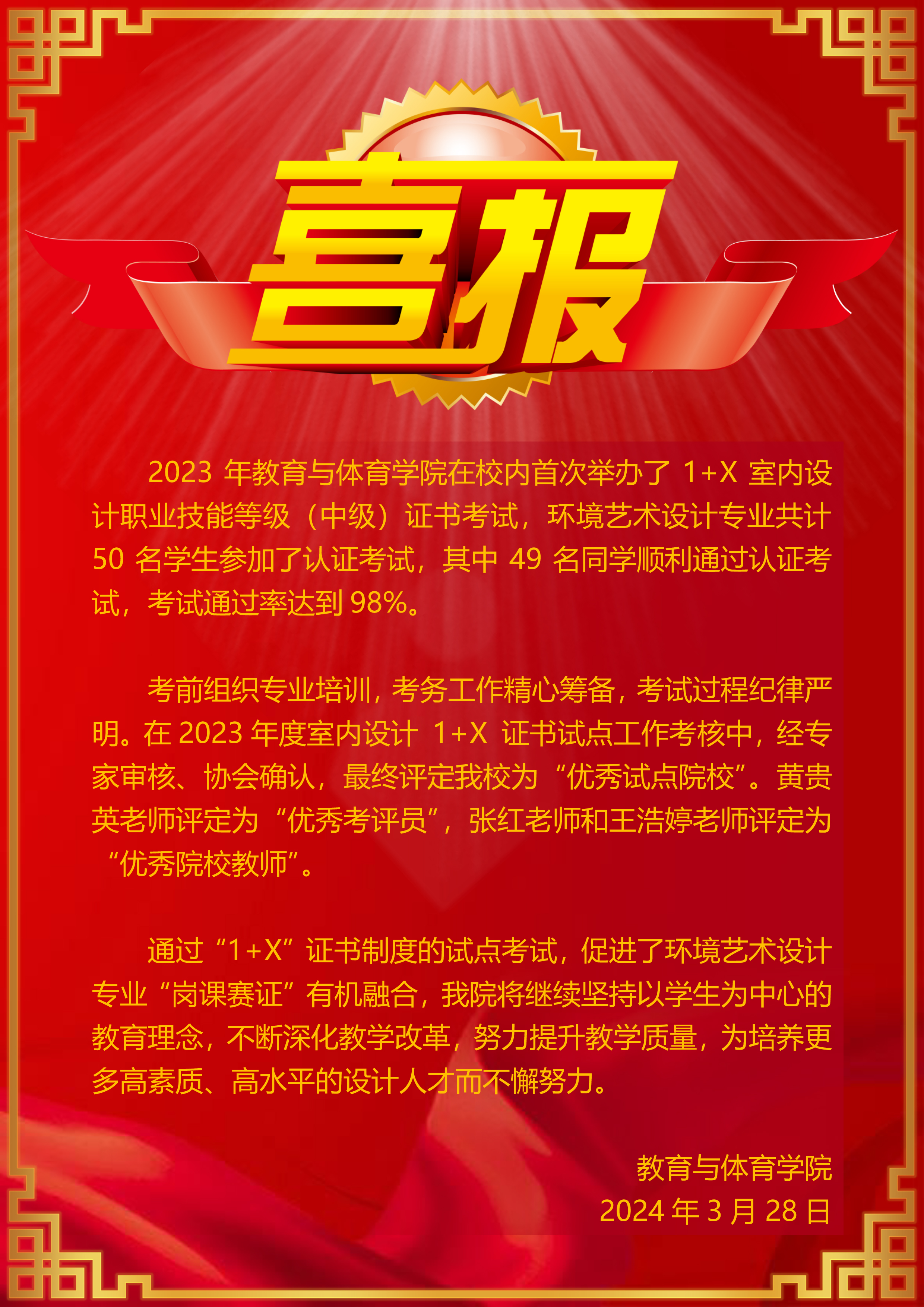 查看详情喜报——教体院开展2023年度1+x室内设计职业技能等级证书考试