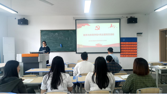 教育与体育学院党总支开展主题党日活动4月19日下午,教育与体育学院党总支在XS606开展了4月主题党日活动,此次党日活动的主题围绕“赓续红色血脉,砥砺奋进力量”展开。本次主题党日活动由教育与体育学院党总支学生党支部书记刁利红主持,首先,全体党员集中学习了“学习习近平总书记重要讲话精神和全国两会精神”以及“学习中国共产党纪律处分条例”、“学习习近平总书记《必须坚持人民至上》”、“结合全民国家安全教
