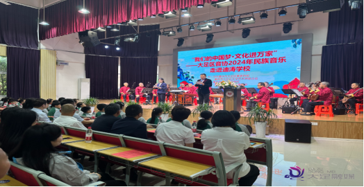 民族音乐走进校园传承文化奏新声4月23日,“我们的中国梦·文化进万家”——大足区音协2024年民族音乐活动走进迪涛学校,我校教育与体育学院教师袁婉月积极参与社会艺术活动,传播我国优秀民族音乐文化,弘扬新时代精神。活动在民乐合奏《大足欢歌》中拉开帷幕,随后,女生独唱《我在大足等你来》、竹笛与古筝演奏《大足的故事》等10余个节目轮番上演。从激昂热烈的鼓乐到悠扬动听的弦乐,从欢快活泼的民间小调到深情款