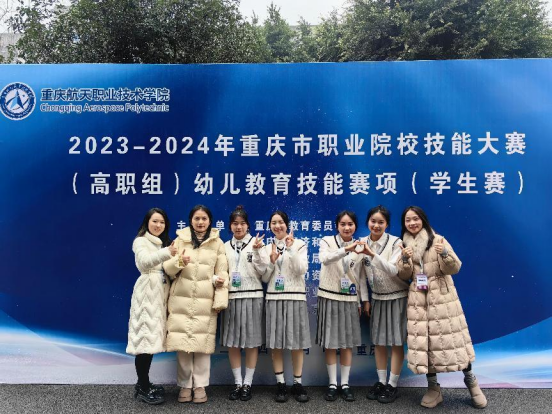 1月4日,由重庆市教育委员会、重庆市经济和信息化委员会、重庆市财政局、重庆市人力资源和社会保障局主办,重庆航天职业技术学院承办的“重庆市职业院校技能大赛”幼儿教育技能赛项在重庆航天职业技术学院成功举办,我校谢元亭、焦文鑫、吴越、赵悦琳四位教师带队参加比赛。参赛学生团队由学前教育专业的学生组成,他们在比赛中展现了较好的技能和专业知识。比赛内容包括幼儿园教师综合技能测评、幼儿园保教活动分析与幼儿教师