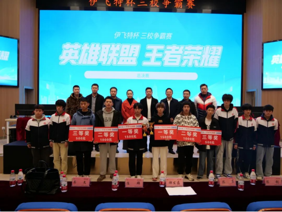12月8日,“伊飞特"杯三校争霸赛总决赛在我校多功能活动厅举办,本次比赛由教育与体育学院承办。重庆机械技师学校、重庆市轻工业学校以及学校领导和师生参与了开赛式和颁奖环节。副校长郜发磊、教体学院院长徐春桥、对外合作办公室主任陈创、招生办李纪春,重庆机械高级技工学校副校长陈群、经贸系主任于明军,重庆轻工业学校副校长陈东、重庆伊飞特科技有限公司董事长介文军、总经理廖文、运营总监李昕,重庆欣有凌希科技有