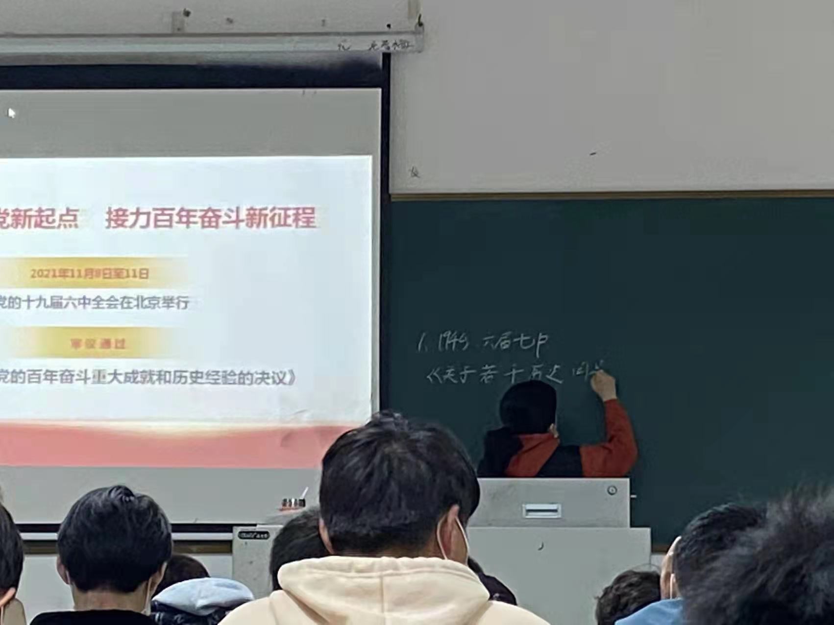 公开课上,何雨灿老师以“百年奋斗谋复兴、勇毅前行兴伟业”为主题,为同学们讲述了党百年奋斗从胜利走向胜利的伟大历史进程、为国家和民族建立的伟大历史功绩。党和人民百年奋斗,书写了中华民族几千年历史上最恢宏的史诗,中华民族迎来了从站起来、富起来到强起来的伟大飞跃,中华民族伟大复兴进入了不可逆转的历史进程。同学们在何雨灿老师循循善诱中加深了对这段历史的认识与理解。此外,她还加入了许多生动的案例,通过以小见大的方式揭开中国共产党为什么能背后的面纱,展现了一堂既富有意趣,有具有深度的思想政治理论课。
