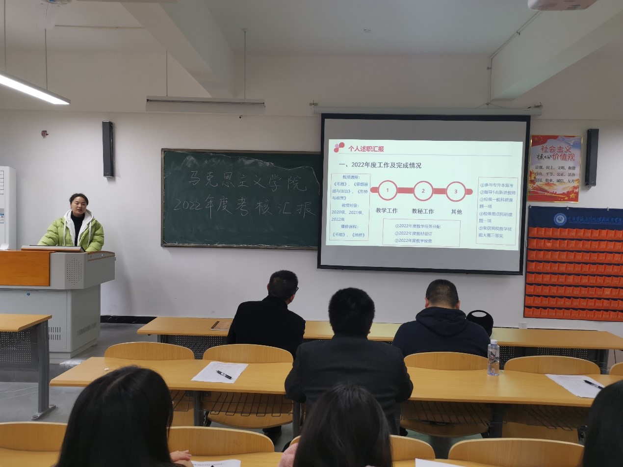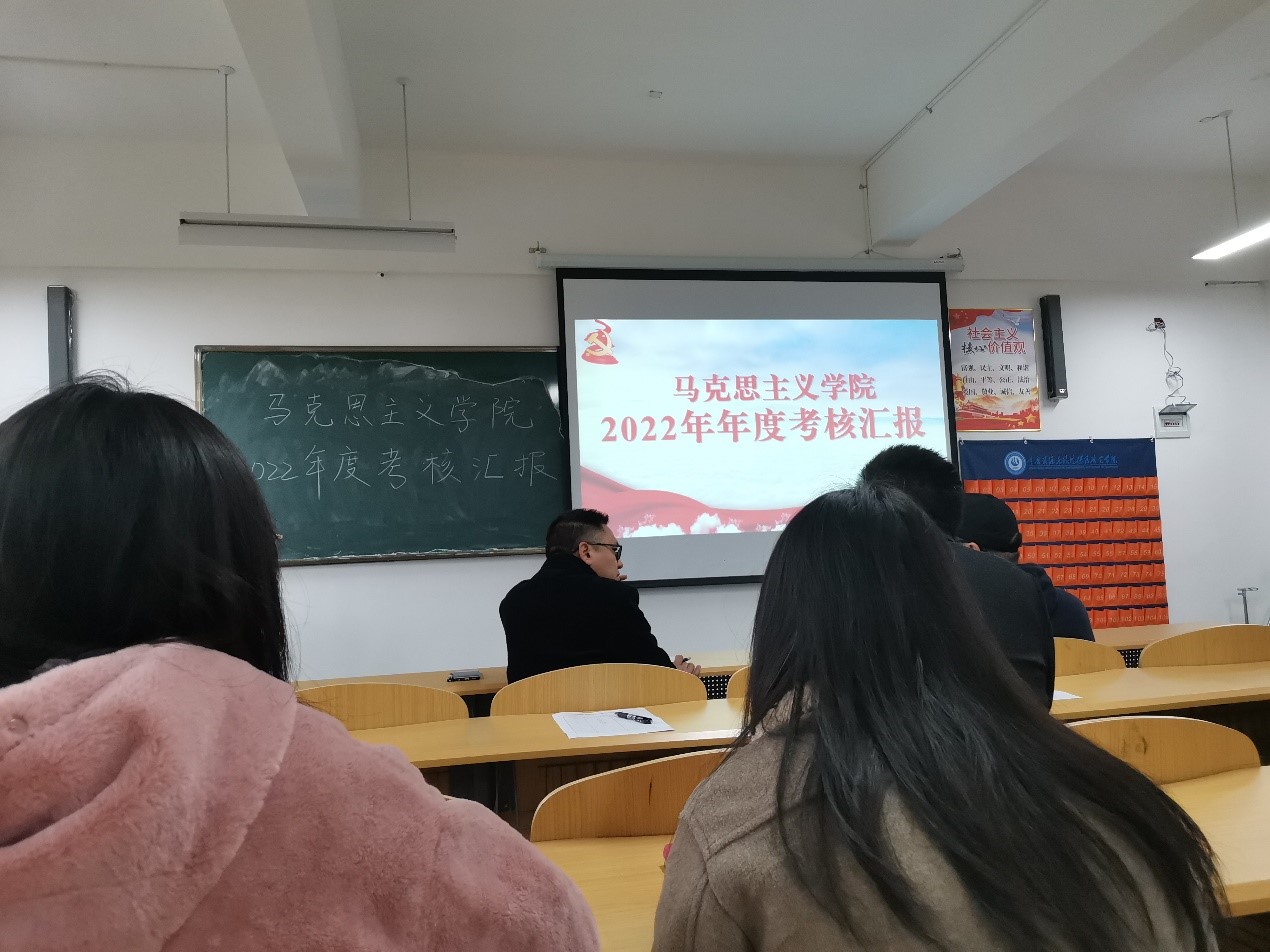 2023年3月24日下午,马克思主义学院2022年度述职大会在XJ205召开。马克思主义学院院长苟兴成、教务处副处长韩坤及马克思主义学院全体专任教师参加此次述职大会,会议由思想政治理论课教研室副主任秦专松主持。