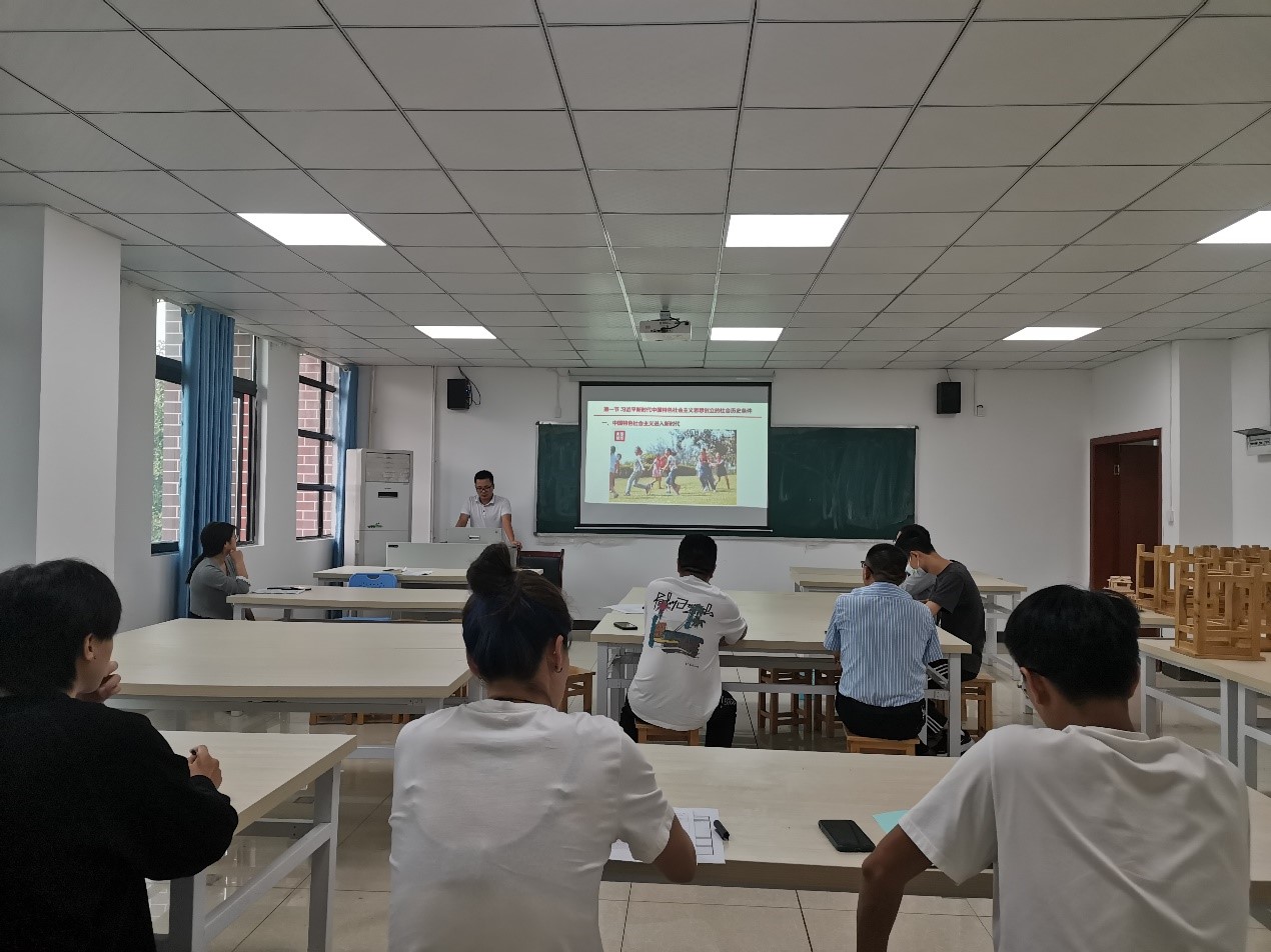 为加强教学管理、保证教学质量、检验开新课教师的教学能力,8月31日,马克思主义学院在实训楼S302教室组织开展2022-2023学年第一学期开新课教师试讲活动。马克思主义学院院长苟兴成、思想政治理论课教研室主任秦专松和全体专任教师参加了本次试讲活动,共有2位开新课教师参加了试讲。活动由思想政治理论课教研室主任秦专松主持。田伟、邓梦玲两位教师参加了本次试讲活动,两位教师分别以《习近平新时代中国特色