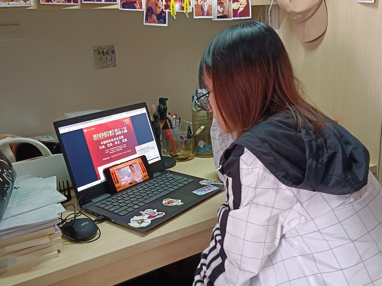 为深入贯彻落实习近平总书记关于“大思政课”和职业教育的重要指示批示,教育部职业教育与成人教育司会同人民网联合推出职业院校师生“同上一堂思政大课”系列课程。根据活动安排,9月17日下午,“同上一堂思政大课”系列课程第一课——“中国特色社会主义的开创、坚持、捍卫、发展”在线举行。学院积极组织师生分别通过手机、电脑等终端,以线上和线下相结合的形式观看课程直播。直播结束后,大家一致认为:此次课程内容丰富