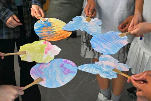 一柄素扇,几色漆料,便是一方自由创作的天地。从楚辞中的纫秋兰以为佩到敦煌壁画的飞天纹样,从水墨山水的留白意境到现代抽象的几何构图,同学们以匠心为墨,让传统符号在扇面上绽放新生。当竹骨绢面邂逅斑斓漆艺,握在手中的不仅是一柄纳凉之器,更是古今美学碰撞出的灵动诗篇。