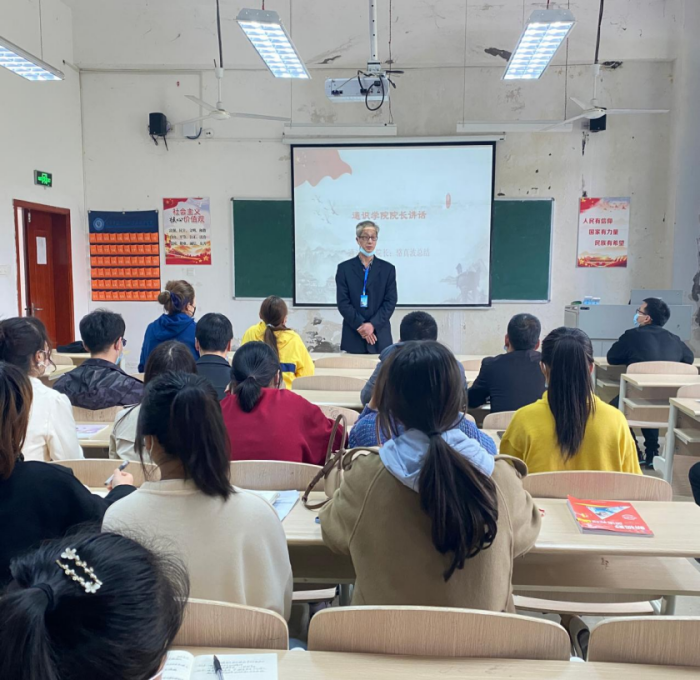 最后,通识学院院长骆真波进行总结发言。第一,强调在当前严峻的防疫形势下,所有教职工都要责无旁贷,遵照党和国家的一切指示和要求开展工作。在大是大非面前、在政治原则问题上做到头脑特别清醒、立场特别坚定,决不当两面派、做两面人,决不拿党的原则做交易。第二,强调所有教职工注重自身素养的提升,守住交往关,交往必须有原则、有规矩,不断净化社交圈、生活圈、朋友圈。守住生活关,培养健康情趣,崇尚简朴生活,保持共产党人本色。守住亲情关,严格家教家风,以身作则。增强“育人先育己、立德先立人”的角色意识,真正做到学为人师,行为世范。第三,强调所有教职工围绕学生、关爱学生、服务学生、不断提高学生思想水平、政治觉悟、道德品质、文化素养,让学生成为德才兼备、全面发展的人才。课堂是我们与学生打交道的主战场。要使培养的学生具备崇高的人生理想、积极的人生态度、完善的人格魅力。我们就要坚定不移地把思想政治工作贯穿教学全过程,实现全程育人,全方位育人。坚持教书和育人相统一,教书是育人的前提,育人贯穿教书的全过程;坚持言传和身教相统一,对学生动之以情,晓之以理,导之以行。让学生在潜移默化中成长为国家需要的可用之才。