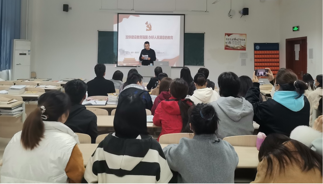其次,由通识学院党支部教师党员姜英平同志领学《加快建设教育强国 办好人民满意的教育》,他提到我们要立足2035年我国发展的总体目标任务,深刻理解教育是国之大计、党之大计,为全面建设社会主义现代化国家、全面推进中华民族伟大复兴作出教育新的贡献。