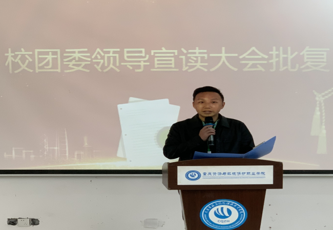 校团委老师谢鳅宣读同意召开学生代表大会的批复