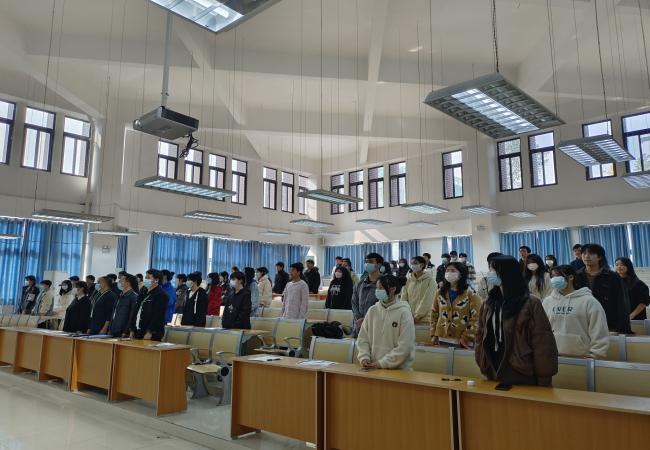 他向同学们发出倡议,号召同学们坚定理想信念,勇担青春使命;勤勉笃学善思,聚焦主责主业;守正开拓创新,谱写青春华章。