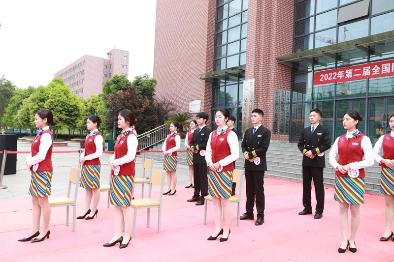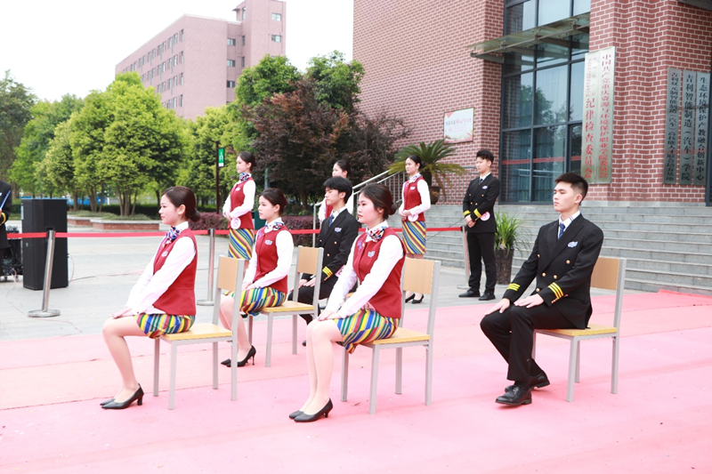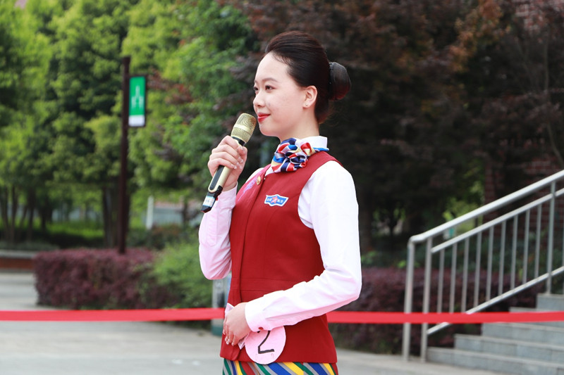 城市轨道交通运营管理专业(高铁乘务方向),是我校与成都东星航空服务有限公司校企合作共建的重点专业,为了给学生提供一个更高的展示平台, 4月6日下午,智能工程学院在图书馆楼前隆重举办了“2022年第二届全国院校民航空中乘务专业技能大赛校内选拔赛”。